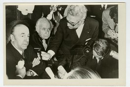[Pablo Neruda en conferencia de prensa] [fotografía]. [Paris, Francia] : [Europa Press], 1971. 1 fotografia ; Monocromo en blanco y negro, 12,05 x 17,9 cm. .