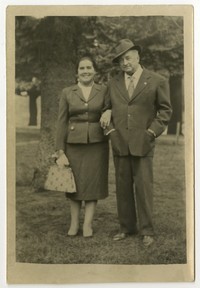 [Retrato de Joaquín Edwards Bello junto a Martha Albornoz] [fotografía]. Santiago, Chile : [Editor no identificado], 1959. 1 fotografía : Monocromo blanco y negro, papel brillante, 12,5 x 8,5 cm .