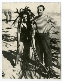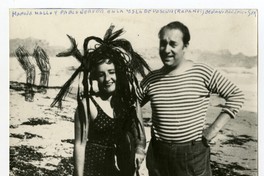 Pablo Neruda junto a Maruja Mallo (Ana María Gómez González), cubierta de algas, en una de las playas de Chile.