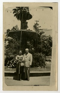 [Retrato de Joaquín Edwards Bello junto a Martha Albornoz] [fotografía]. Santiago, Chile : [Editor no identificado], 1960. 1 fotografía : Monocromo blanco y negro, papel brillante, 13,5 x 8,5 cm .