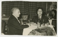 [Retrato de Joaquín Edwards Bello junto a Martha Albornoz] [fotografía]. Santiago, Chile : [Editor no identificado], 1960. 1 fotografía : Monocromo blanco y negro, papel brillante, 9,5 x 15,5 cm .