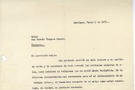 [Carta] 1970 marzo 3, Santiago, Chile [a] Germán Vergara [manuscrito] Jorge Alessandri Rodríguez.