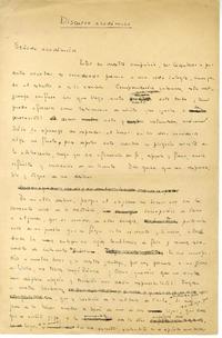 Discurso académico [manuscrito] Roque Esteban Scarpa.