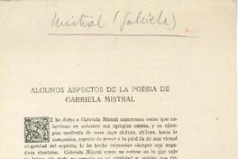Algunos aspectos de la poesía de Gabriela Mistral [manuscrito] Raúl Silva Castro.