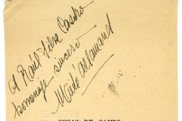 [Dedicatoria] 1935 diciembre 9, Santiago, Chile [a] Raúl Silva Castro [manuscrito] / Maité Allamand. 1 hoja ; 18,5 x 12,5 cm. .