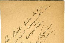 [Dedicatoria] 1929 septiembre, Santiago, Chile [a] Raúl Silva Castro [manuscrito] / Eugenio Orrego Vicuña. 1 hoja ; 19,5 x 12 cm. .