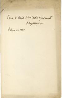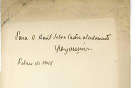 [Dedicatoria] 1941 febrero, Santiago, Chile [a] Raúl Silva Castro [manuscrito] / Luis Oyarzún. 1 hoja ; 26,5 x 16,5 cm. .