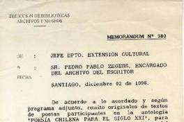 1 antología de poemas : Archivo del Escritor Biblioteca Nacional, Avenida Libertador Bernardo O'Higgins, Santiago, Chile.