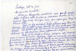 [Carta] 1962 octubre 4, Santiago, Chile [a] Luis Oyarzún [manuscrito] Hortensia Peña.