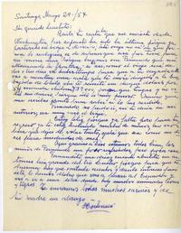 [Carta] 1957 mayo 29, Santiago, Chile [a] Luis Oyarzún [manuscrito] Hortensia Peña.