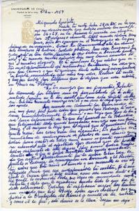 [Carta] 1957 diciembre 5, Santiago, Chile [a] Luis Oyarzún [manuscrito] / Hortensia Peña. 3 hojas ; 32 x 21 cm. .