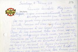 [Carta] 1968 febrero 8, Santiago, Chile [a] Luis Oyarzún [manuscrito] Hortensia Peña.