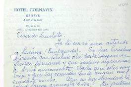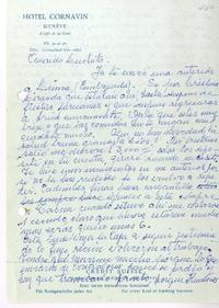 Papel de color verde claro, con membrete "Hotel Cornavin".