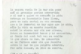 [La espuma vuela de la mar...] [manuscrito] / Luis Oyarzún ; Andrés Pizarro. 1 hoja ; 15,4 x 14,4 cm. .