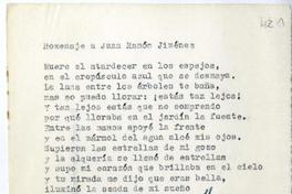 Homenaje a Juan Ramón Jiménez [manuscrito] Luis Oyarzún ; Enrique Lihn y Andrés Pizarro.