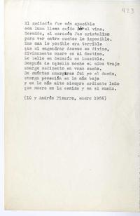 [El mediodía fue más apacible] [manuscrito] / Luis Oyarzún y Andrés Pizarro. 1 hoja ; 21,3 x 13,8 cm. .
