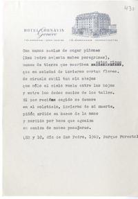 1 poema : Archivo del Escritor Biblioteca Nacional, Avenida Libertador Bernardo O'Higgins, Santiago, Chile.