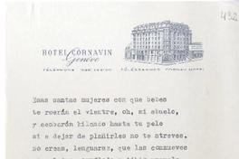 Papel de color verde claro con membrete "Hotel Cornavin".