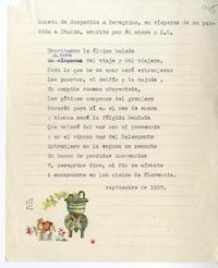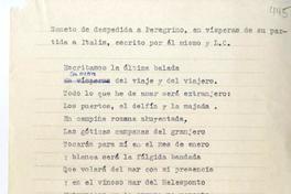 Soneto de despedida a Peregrino (Andrés Pizarro), en vísperas de su partida a Italia escrito por él y Luis Oyarzún.
