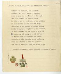 [Estamos en octubre. La glicina] [manuscrito] / Luis Oyarzún y Roberto Humeres. 1 hoja ; 20,8 x 17 cm. .