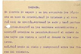 Campana [manuscrito] / Luis Oyarzún. 1 hoja ; 18,5 x 13,5 cm. .
