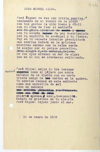 José Miguel Silva [manuscrito] / Luis Oyarzún. 1 hoja ; 21,5 x 17,7 cm. .