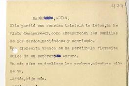 Madre, adiós [manuscrito] Luis Oyarzún.