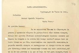 [Carta] 1941 marzo 29, Santiago, Chile [a] Leonor Oyarzún Ivanovic, Santa Cruz, Chile [manuscrito] Luis Oyarzún.