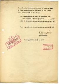 [Recibo] 1940 abril 22, Santiago, Chile [de] Biblioteca Nacional de Chile [manuscrito] / Luis Oyarzún. 1 hoja ; 29,7 x 20,5 cm. .