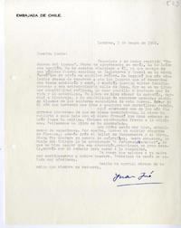 [Carta] 1962 enero 3, Londres, Inglaterra [a] Luis Oyarzún [manuscrito] Juan José Fernández.