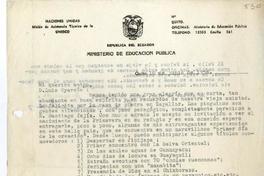 Papel con membrete "Naciones Unidas Misión de Asistencia Técnica de la UNESCO, República del Ecuador, Ministerio de Educación Pública".