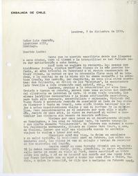 [Carta] 1959 diciembre 8, Londres, Inglaterra [a] Luis Oyarzún [manuscrito] Juan José Fernández.