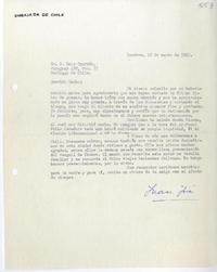 [Carta] 1963 marzo 18, Londres, Inglaterra [a] Luis Oyarzún [manuscrito] / Juan José Fernández. 1 hoja ; 25,4 x 20,2 cm. .