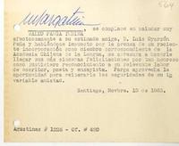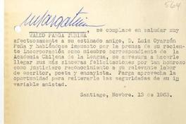 [Tarjeta] 1963 noviembre 13, Santiago, Chile [a] Luis Oyarzún [manuscrito] Waldo Parga Turina.