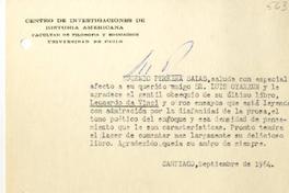 [Tarjeta] 1964 septiembre, Santiago, Chile [a] Luis Oyarzún [manuscrito] Eugenio Pereira Salas.