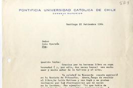 [Carta] 1964 septiembre 22, Santiago, Chile [a] Luis Oyarzún [manuscrito] Juan de Dios Vial Larraín.