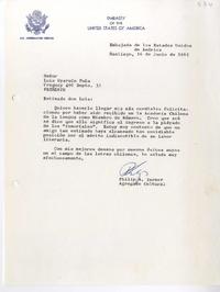 [Carta] 1965 junio 16, Santiago, Chile [a] Luis Oyarzún [manuscrito] / Philip A. Turner. 1 hoja ; 26,7 x 20 cm. .