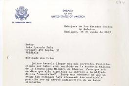 El agregado cultural de la Embajada de los Estados Unidos, lo felicita por su incorporación como Miembro de Número a la Academia Chilena de la Lengua.