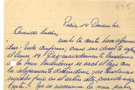 [Carta] [1957] diciembre 14, Paris, Francia [a] Luis Oyarzún [manuscrito] Eugenio Dittborn.