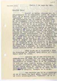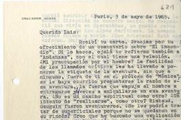 [Carta] 1965 mayo 3, Paris, Francia [a] Luis Oyarzún [manuscrito] Salvador Reyes.