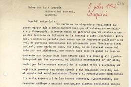 [Carta] 1972 julio 5, Concepción, Chile [a] Luis Oyarzún [manuscrito] Gastón von dem Bussche.