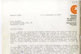 Le solicita un texto sobre Pablo Neruda para el Centro Editor de América Latina.