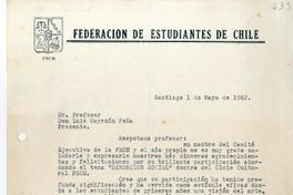 [Carta] 1962 mayo 1, Santiago, Chile [a] Luis Oyarzún [manuscrito] Humberto Viveros L.