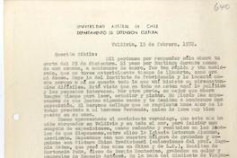 [Carta] 1972 febrero 15, Valdivia, Chile [a] Sybila Arredondo [manuscrito] Luis Oyarzún.