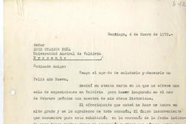 Agradece su invitación a exponer en Valdivia, pero desearía que antes viera su obra personalmente.