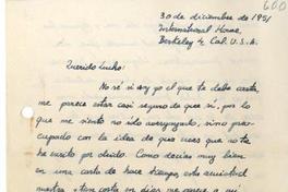 [Carta] 1951 diciembre 30, California, Estados Unidos [a] Luis Oyarzún [manuscrito] Enrique Bello.