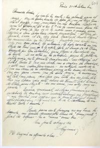 [Carta] [1957] septiembre 21, Paris, Francia [a] Luis Oyarzún [manuscrito] Eugenio Dittborn Pinto.