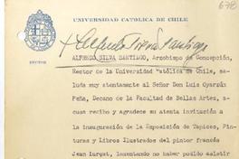 El Rector de la Universidad Católica se excusa por no asistir a la "Exposición de tapices, pinturas y libros ilustrados" del pintor francés Jean Lurgat.