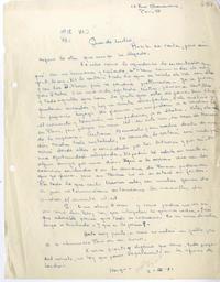 Le agradece las atenciones que ha tenido con su hermana y su cuñado. Le comenta sobre su vida en París.
