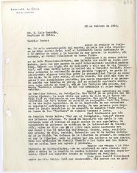 Papel con membrete "Embajada de Chile, Río de Janeiro".
